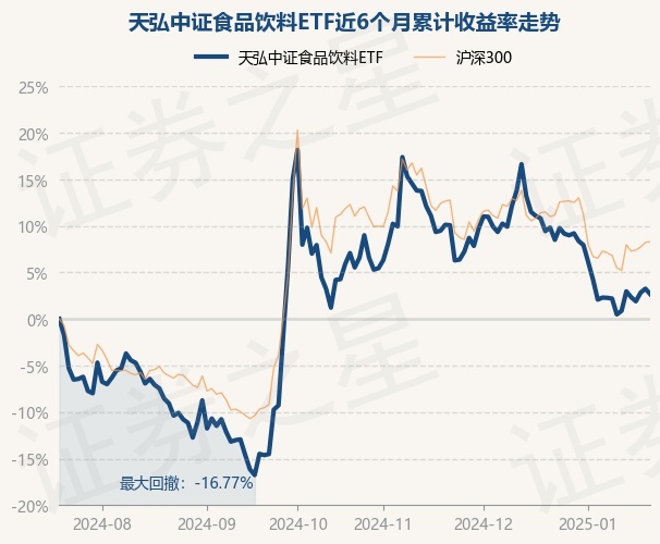 证券之星消息,1月21日,天弘中证食品饮料ETF最新单位净值为0.692元,累计净值为0.692元,较前一交易日下跌0.56%。历史数据显示该基金近1个月下跌6.51%,近3个月下跌1.54%,近6个月上涨2.67%,近1年下跌2.48%。该基金近6个月的累计收益率走势如下图: