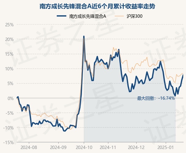 证券之星消息,1月21日,南方成长先锋混合A最新单位净值为0.6701元,累计净值为0.6701元,较前一交易日上涨1.45%。历史数据显示该基金近1个月下跌2.0%,近3个月下跌4.26%,近6个月上涨7.73%,近1年上涨25.53%。该基金近6个月的累计收益率走势如下图: