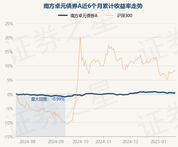 证券之星消息,1月21日,南方卓元债券A最新单位净值为1.0792元,累计净值为1.3566元,较前一交易日上涨0.0%。历史数据显示该基金近1个月下跌0.33%,近3个月上涨0.2%,近6个月上涨0.4%,近1年上涨3.96%。该基金近6个月的累计收益率走势如下图: