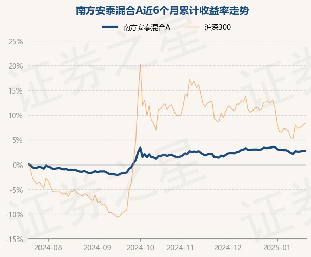证券之星消息,1月21日,南方安泰混合A最新单位净值为1.152元,累计净值为1.4962元,较前一交易日上涨0.0%。历史数据显示该基金近1个月下跌0.23%,近3个月上涨1.06%,近6个月上涨2.71%,近1年上涨7.7%。该基金近6个月的累计收益率走势如下图:
