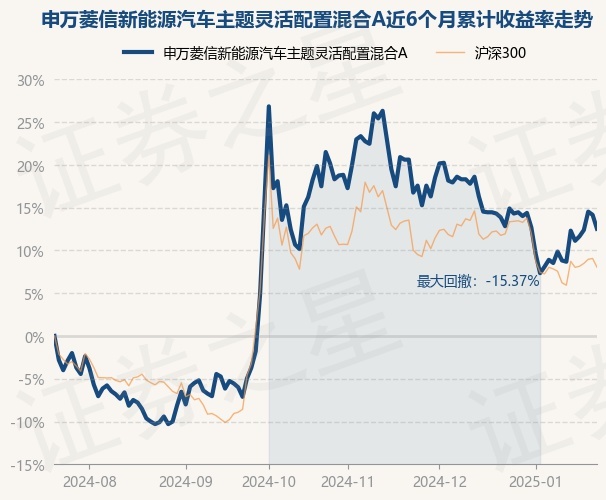 证券之星消息,1月22日,申万菱信新能源汽车主题灵活配置混合A最新单位净值为1.518元,累计净值为2.508元,较前一交易日下跌1.43%。历史数据显示该基金近1个月下跌1.17%,近3个月下跌4.83%,近6个月上涨12.53%,近1年上涨17.77%。该基金近6个月的累计收益率走势如下图: