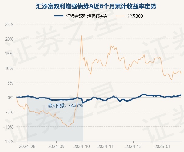 证券之星消息,1月22日,汇添富双利增强债券A最新单位净值为1.0746元,累计净值为1.5259元,较前一交易日上涨0.16%。历史数据显示该基金近1个月上涨0.1%,近3个月上涨0.98%,近6个月上涨0.83%,近1年上涨6.35%。该基金近6个月的累计收益率走势如下图: