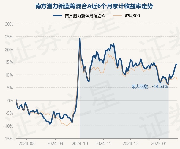 证券之星消息,1月22日,南方潜力新蓝筹混合A最新单位净值为1.7756元,累计净值为2.0057元,较前一交易日上涨0.01%。历史数据显示该基金近1个月上涨0.28%,近3个月下跌2.57%,近6个月上涨13.97%,近1年上涨16.91%。该基金近6个月的累计收益率走势如下图: