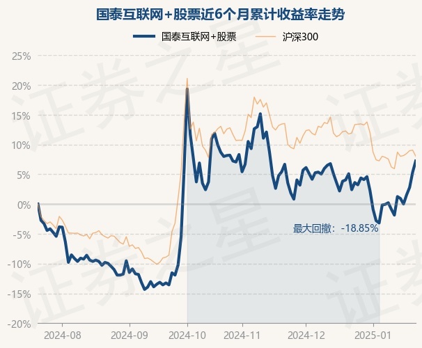 证券之星消息,1月22日,国泰互联网+股票最新单位净值为1.959元,累计净值为2.118元,较前一交易日上涨1.77%。历史数据显示该基金近1个月上涨2.03%,近3个月下跌2.49%,近6个月上涨7.22%,近1年上涨13.83%。该基金近6个月的累计收益率走势如下图: