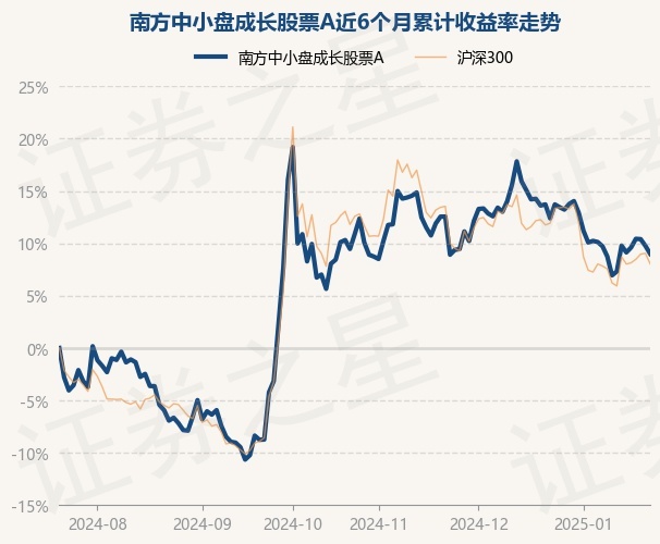证券之星消息,1月22日,南方中小盘成长股票A最新单位净值为0.9894元,累计净值为1.8204元,较前一交易日下跌0.69%。历史数据显示该基金近1个月下跌4.15%,近3个月下跌1.01%,近6个月上涨9.0%,近1年上涨10.21%。该基金近6个月的累计收益率走势如下图: