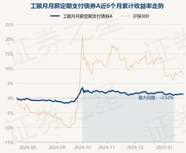 证券之星消息,1月22日,工银月月薪定期支付债券A最新单位净值为1.744元,累计净值为1.744元,较前一交易日下跌0.17%。历史数据显示该基金近1个月下跌0.29%,近3个月下跌1.19%,近6个月上涨1.16%,近1年上涨7.06%。该基金近6个月的累计收益率走势如下图: