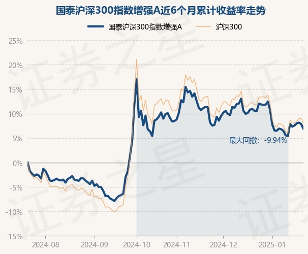 证券之星消息,1月22日,国泰沪深300指数增强A最新单位净值为1.1665元,累计净值为2.1194元,较前一交易日下跌0.89%。历史数据显示该基金近1个月下跌3.32%,近3个月下跌2.29%,近6个月上涨6.91%,近1年上涨19.36%。该基金近6个月的累计收益率走势如下图: