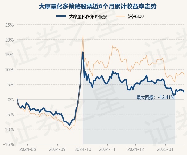证券之星消息,1月22日,大摩量化多策略股票最新单位净值为1.025元,累计净值为1.025元,较前一交易日下跌0.68%。历史数据显示该基金近1个月下跌2.84%,近3个月下跌4.74%,近6个月上涨2.3%,近1年上涨14.27%。该基金近6个月的累计收益率走势如下图: