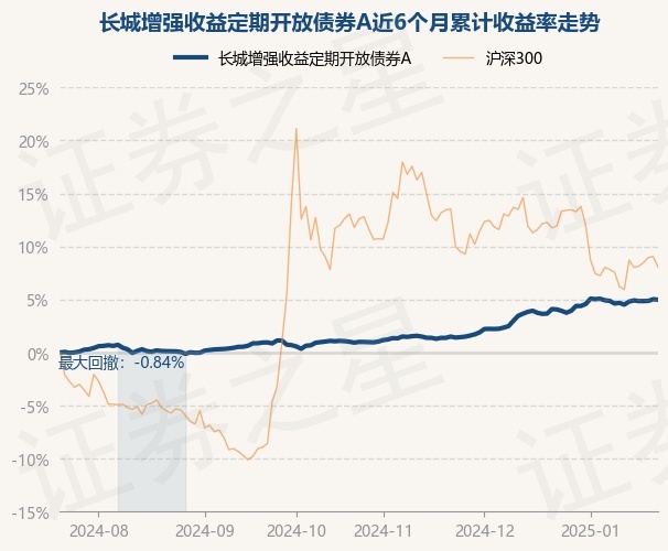证券之星消息,1月22日,长城增强收益定期开放债券A最新单位净值为1.1291元,累计净值为1.6704元,较前一交易日下跌0.04%。历史数据显示该基金近1个月上涨0.85%,近3个月上涨3.87%,近6个月上涨4.98%,近1年上涨9.98%。该基金近6个月的累计收益率走势如下图: