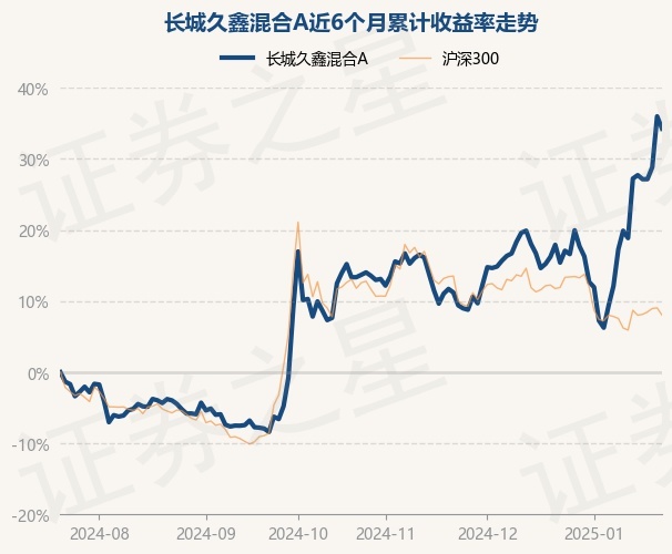 证券之星消息,1月22日,长城久鑫混合A最新单位净值为1.5991元,累计净值为1.9577元,较前一交易日下跌1.26%。历史数据显示该基金近1个月上涨13.87%,近3个月上涨16.55%,近6个月上涨34.28%,近1年上涨31.49%。该基金近6个月的累计收益率走势如下图: