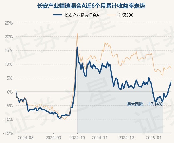 证券之星消息,1月22日,长安产业精选混合A最新单位净值为1.0668元,累计净值为1.3068元,较前一交易日上涨1.08%。历史数据显示该基金近1个月下跌0.09%,近3个月下跌6.75%,近6个月上涨3.57%,近1年上涨7.44%。该基金近6个月的累计收益率走势如下图: