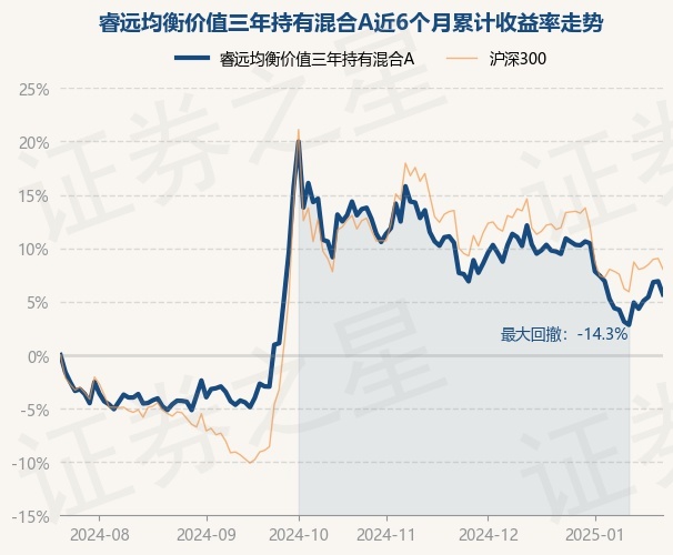 证券之星消息,1月22日,睿远均衡价值三年持有混合A最新单位净值为1.2677元,累计净值为1.2677元,较前一交易日下跌1.15%。历史数据显示该基金近1个月下跌3.66%,近3个月下跌6.56%,近6个月上涨5.69%,近1年上涨21.79%。该基金近6个月的累计收益率走势如下图: