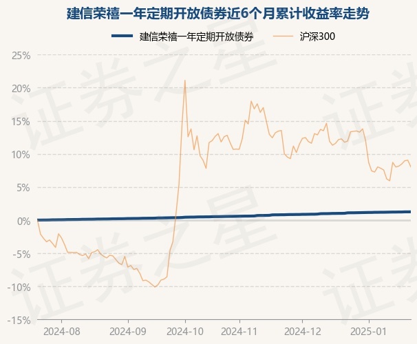 证券之星消息,1月22日,建信荣禧一年定期开放债券最新单位净值为1.0011元,累计净值为1.1303元,较前一交易日上涨0.01%。历史数据显示该基金近1个月上涨0.23%,近3个月上涨0.73%,近6个月上涨1.25%,近1年上涨2.3%。该基金近6个月的累计收益率走势如下图: