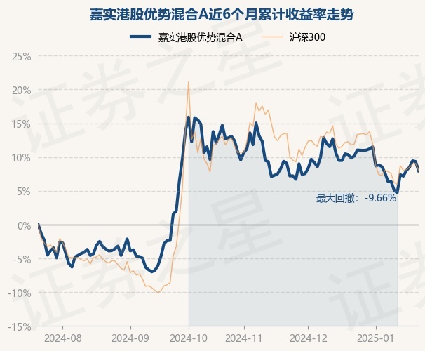 证券之星消息,1月22日,嘉实港股优势混合A最新单位净值为0.8661元,累计净值为0.8661元,较前一交易日下跌1.27%。历史数据显示该基金近1个月下跌1.74%,近3个月下跌4.74%,近6个月上涨7.95%,近1年上涨37.06%。该基金近6个月的累计收益率走势如下图:
