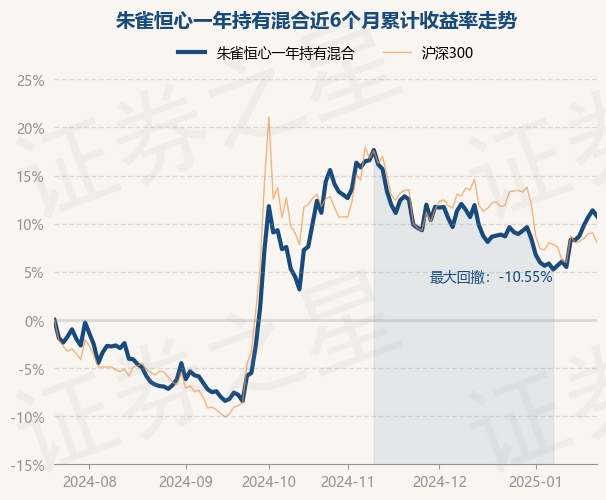 朱雀恒心一年持有混合为混合型-偏股基金,根据最新一期基金季报显示,该基金资产配置:股票占净值比79.97%,无债券类资产,现金占净值比9.75%。基金十大重仓股如下: