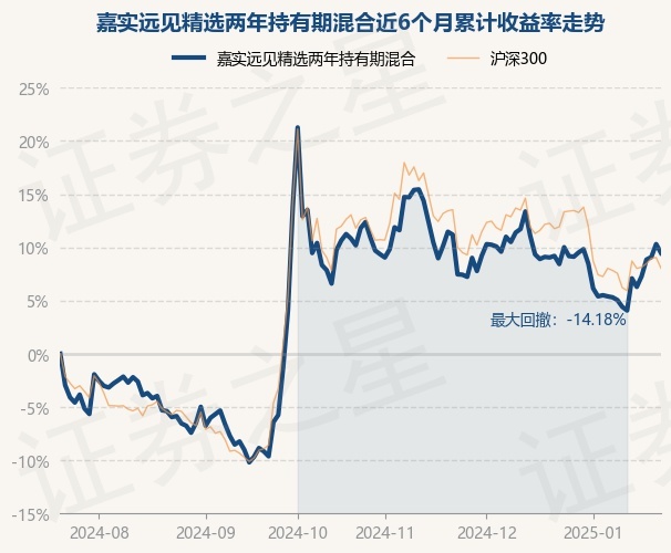 证券之星消息,1月22日,嘉实远见精选两年持有期混合最新单位净值为0.6024元,累计净值为0.6024元,较前一交易日下跌0.76%。历史数据显示该基金近1个月上涨0.25%,近3个月下跌1.6%,近6个月上涨9.47%,近1年上涨13.66%。该基金近6个月的累计收益率走势如下图:
