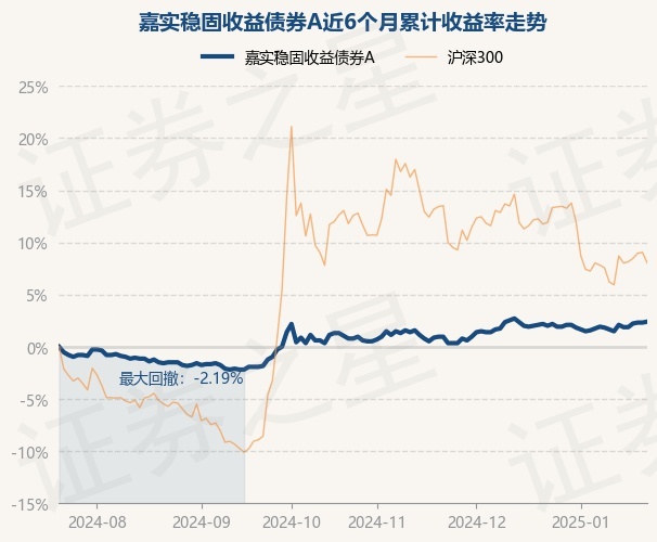 证券之星消息,1月22日,嘉实稳固收益债券A最新单位净值为1.168元,累计净值为1.337元,较前一交易日上涨0.09%。历史数据显示该基金近1个月上涨0.22%,近3个月上涨1.08%,近6个月上涨2.41%,近1年上涨7.88%。该基金近6个月的累计收益率走势如下图: