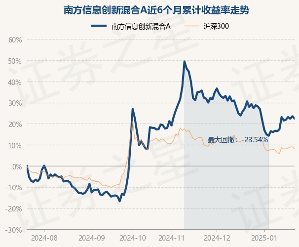 证券之星消息,1月22日,南方信息创新混合A最新单位净值为1.7035元,累计净值为1.7035元,较前一交易日下跌0.89%。历史数据显示该基金近1个月下跌6.25%,近3个月上涨3.74%,近6个月上涨22.43%,近1年上涨32.17%。该基金近6个月的累计收益率走势如下图: