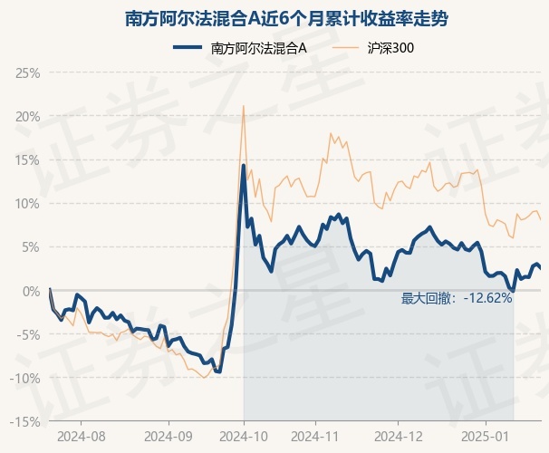 证券之星消息,1月22日,南方阿尔法混合A最新单位净值为0.4793元,累计净值为0.4793元,较前一交易日下跌0.44%。历史数据显示该基金近1个月下跌2.18%,近3个月下跌2.86%,近6个月上涨2.52%,近1年上涨13.85%。该基金近6个月的累计收益率走势如下图:
