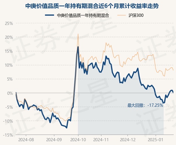 证券之星消息,1月22日,中庚价值品质一年持有期混合最新单位净值为1.3917元,累计净值为1.3917元,较前一交易日下跌0.8%。历史数据显示该基金近1个月下跌1.47%,近3个月下跌9.32%,近6个月上涨0.09%,近1年上涨17.82%。该基金近6个月的累计收益率走势如下图: