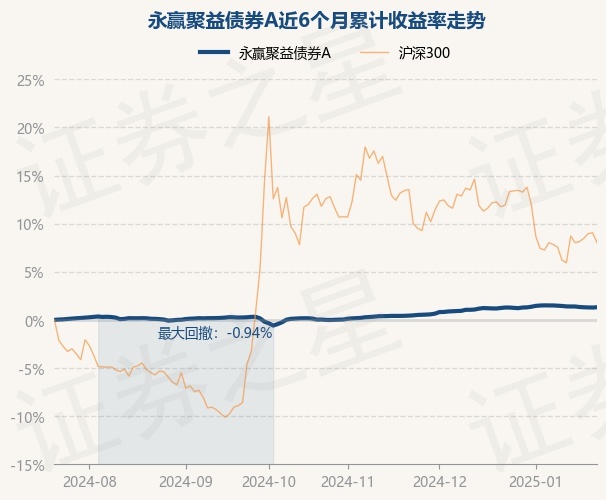 证券之星消息,1月22日,永赢聚益债券A最新单位净值为1.1194元,累计净值为1.2374元,较前一交易日上涨0.03%。历史数据显示该基金近1个月上涨0.07%,近3个月上涨1.17%,近6个月上涨1.31%,近1年上涨3.93%。该基金近6个月的累计收益率走势如下图: