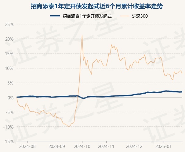 证券之星消息,1月22日,招商添泰1年定开债发起式最新单位净值为1.0763元,累计净值为1.0763元,较前一交易日上涨0.03%。历史数据显示该基金近1个月上涨0.13%,近3个月上涨1.6%,近6个月上涨1.85%,近1年上涨4.62%。该基金近6个月的累计收益率走势如下图: