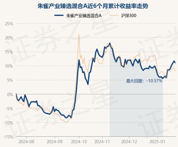 朱雀产业臻选混合A为混合型-偏股基金,根据最新一期基金季报显示,该基金资产配置:股票占净值比79.98%,无债券类资产,现金占净值比7.82%。基金十大重仓股如下: