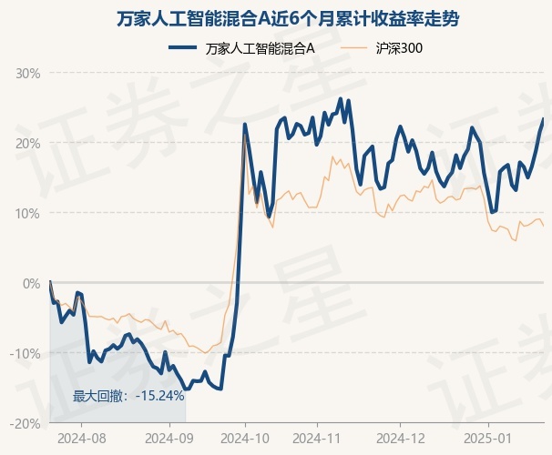 证券之星消息,1月22日,万家人工智能混合A最新单位净值为2.6239元,累计净值为2.6239元,较前一交易日上涨1.42%。历史数据显示该基金近1个月上涨4.31%,近3个月下跌0.2%,近6个月上涨23.24%,近1年上涨54.99%。该基金近6个月的累计收益率走势如下图: