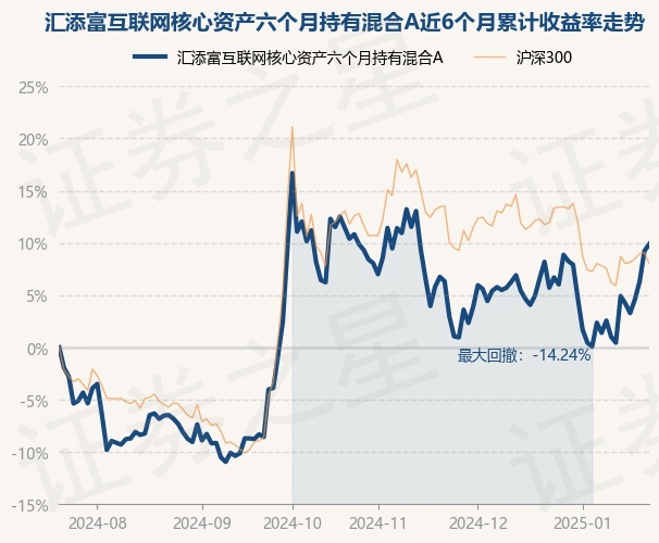 汇添富互联网核心资产六个月持有混合A为混合型-偏股基金,根据最新一期基金季报显示,该基金资产配置:股票占净值比92.84%,无债券类资产,现金占净值比6.49%。基金十大重仓股如下: