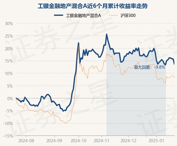 证券之星消息,1月22日,工银金融地产混合A最新单位净值为2.586元,累计净值为3.63元,较前一交易日下跌1.75%。历史数据显示该基金近1个月下跌2.45%,近3个月下跌4.33%,近6个月上涨13.67%,近1年上涨31.34%。该基金近6个月的累计收益率走势如下图: