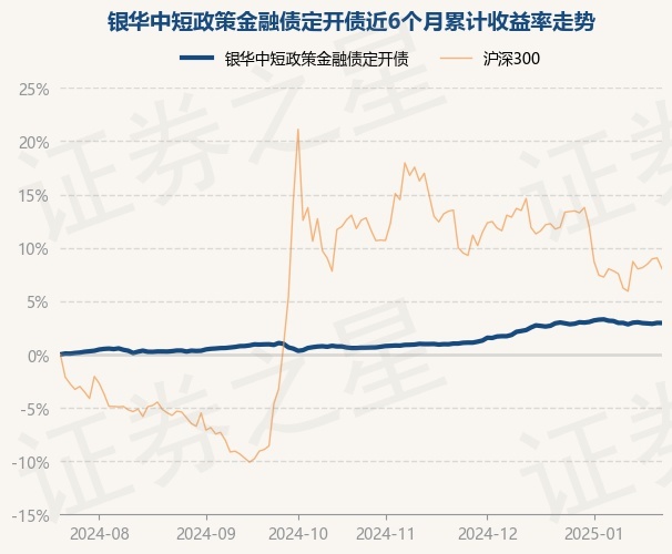 银华中短政策金融债定开债为债券型-中短债基金,根据最新一期基金季报显示,该基金资产配置:无股票类资产,债券占净值比123.09%,现金占净值比0.1%。