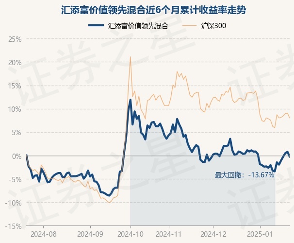 证券之星消息,1月22日,汇添富价值领先混合最新单位净值为0.6763元,累计净值为0.6763元,较前一交易日下跌1.01%。历史数据显示该基金近1个月下跌0.57%,近3个月下跌6.79%,近6个月下跌0.24%,近1年上涨9.52%。该基金近6个月的累计收益率走势如下图: