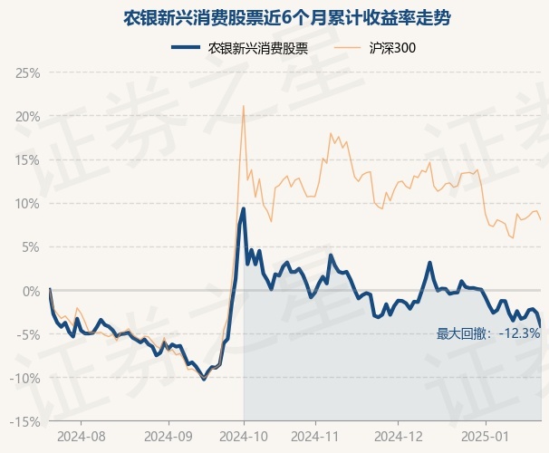 证券之星消息,1月22日,农银新兴消费股票最新单位净值为0.5419元,累计净值为0.5419元,较前一交易日下跌1.51%。历史数据显示该基金近1个月下跌3.82%,近3个月下跌6.65%,近6个月下跌4.14%,近1年下跌0.37%。该基金近6个月的累计收益率走势如下图: