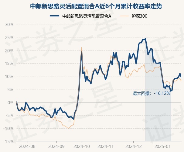 证券之星消息,1月22日,中邮新思路灵活配置混合A最新单位净值为2.384元,累计净值为2.384元,较前一交易日下跌1.24%。历史数据显示该基金近1个月下跌8.97%,近3个月下跌2.77%,近6个月上涨9.61%,近1年上涨16.52%。该基金近6个月的累计收益率走势如下图:
