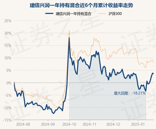 证券之星消息,1月22日,建信兴润一年持有混合最新单位净值为0.6282元,累计净值为0.6282元,较前一交易日下跌0.17%。历史数据显示该基金近1个月上涨0.48%,近3个月下跌6.08%,近6个月上涨3.58%,近1年上涨15.99%。该基金近6个月的累计收益率走势如下图: