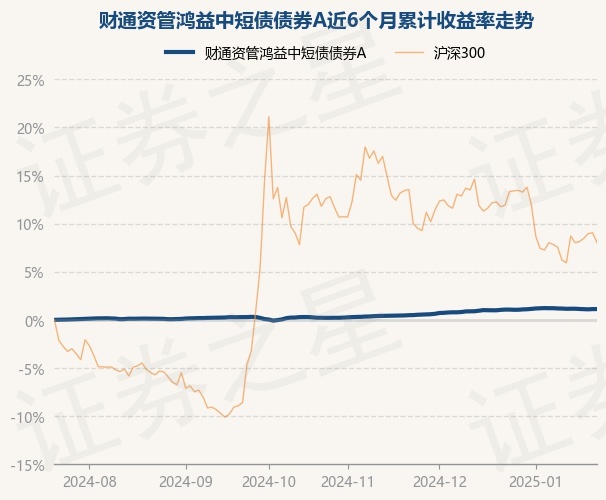 证券之星消息,1月22日,财通资管鸿益中短债债券A最新单位净值为1.1139元,累计净值为1.2099元,较前一交易日上涨0.0%。历史数据显示该基金近1个月上涨0.08%,近3个月上涨0.86%,近6个月上涨1.13%,近1年上涨2.6%。该基金近6个月的累计收益率走势如下图: