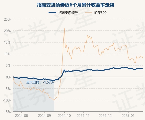 证券之星消息,1月22日,招商安凯债券最新单位净值为1.0305元,累计净值为1.1282元,较前一交易日下跌0.06%。历史数据显示该基金近1个月下跌0.28%,近3个月上涨0.77%,近6个月上涨3.41%,近1年上涨11.16%。该基金近6个月的累计收益率走势如下图: