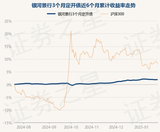 证券之星消息,1月22日,银河景行3个月定开债最新单位净值为1.0629元,累计净值为1.2866元,较前一交易日上涨0.01%。历史数据显示该基金近1个月上涨0.24%,近3个月上涨1.64%,近6个月上涨1.9%,近1年上涨4.8%。该基金近6个月的累计收益率走势如下图: