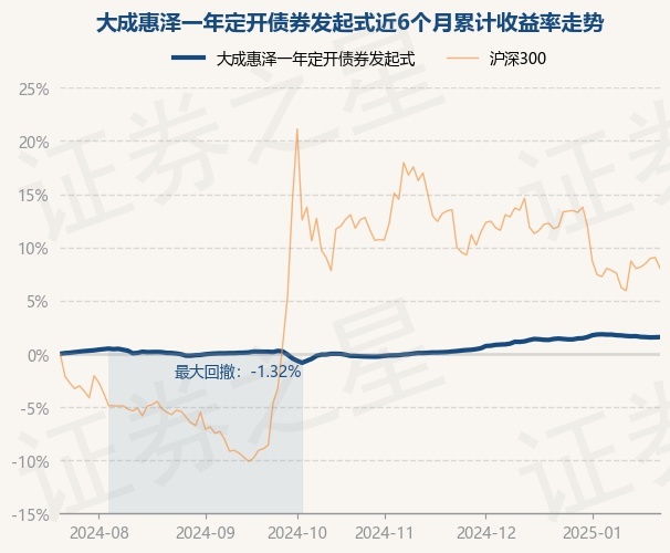 证券之星消息,1月22日,大成惠泽一年定开债券发起式最新单位净值为1.0415元,累计净值为1.1357元,较前一交易日上涨0.02%。历史数据显示该基金近1个月上涨0.17%,近3个月上涨1.66%,近6个月上涨1.57%,近1年上涨4.74%。该基金近6个月的累计收益率走势如下图: