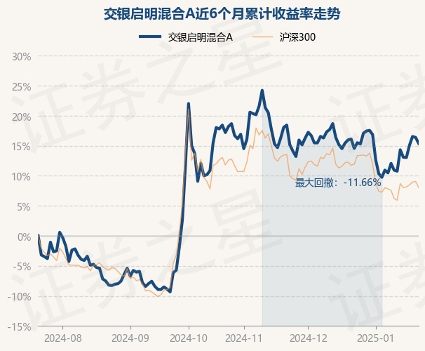 证券之星消息,1月22日,交银启明混合A最新单位净值为1.1348元,累计净值为1.3008元,较前一交易日下跌0.85%。历史数据显示该基金近1个月下跌0.62%,近3个月下跌2.05%,近6个月上涨15.4%,近1年上涨19.57%。该基金近6个月的累计收益率走势如下图:
