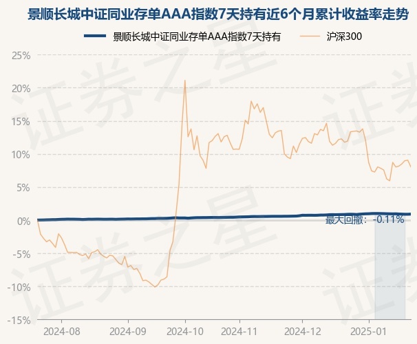 证券之星消息,1月22日,景顺长城中证同业存单AAA指数7天持有最新单位净值为1.0627元,累计净值为1.0627元,较前一交易日上涨0.02%。历史数据显示该基金近1个月上涨0.06%,近3个月上涨0.5%,近6个月上涨0.9%,近1年上涨2.15%。该基金近6个月的累计收益率走势如下图: