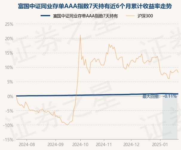 证券之星消息,1月22日,富国中证同业存单AAA指数7天持有最新单位净值为1.0726元,累计净值为1.0726元,较前一交易日上涨0.02%。历史数据显示该基金近1个月上涨0.03%,近3个月上涨0.38%,近6个月上涨0.73%,近1年上涨1.89%。该基金近6个月的累计收益率走势如下图: