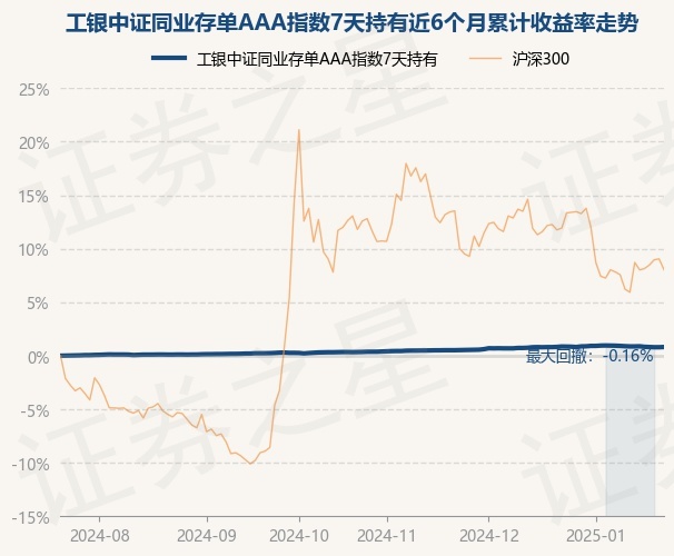 证券之星消息,1月22日,工银中证同业存单AAA指数7天持有最新单位净值为1.053元,累计净值为1.053元,较前一交易日上涨0.02%。历史数据显示该基金近1个月下跌0.01%,近3个月上涨0.47%,近6个月上涨0.81%,近1年上涨2.05%。该基金近6个月的累计收益率走势如下图: