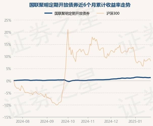 证券之星消息,1月22日,国联聚明定期开放债券最新单位净值为1.0403元,累计净值为1.2667元,较前一交易日上涨0.01%。历史数据显示该基金近1个月上涨0.21%,近3个月上涨1.14%,近6个月上涨1.26%,近1年上涨4.09%。该基金近6个月的累计收益率走势如下图: