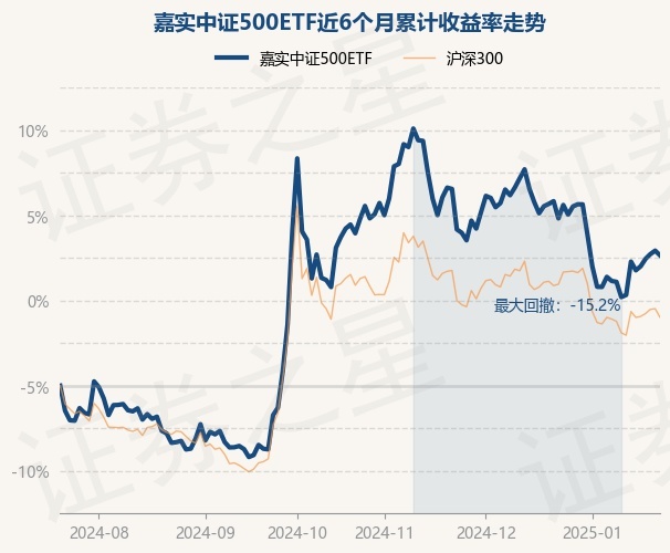 证券之星消息,1月22日,嘉实中证500ETF最新单位净值为2.2384元,累计净值为1.8544元,较前一交易日下跌0.48%。历史数据显示该基金近1个月下跌5.23%,近3个月下跌2.73%,近6个月上涨15.22%,近1年上涨18.8%。该基金近6个月的累计收益率走势如下图: