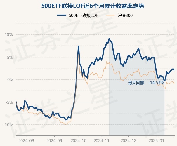 证券之星消息,1月22日,500ETF联接LOF最新单位净值为1.5706元,累计净值为1.6706元,较前一交易日下跌0.44%。历史数据显示该基金近1个月下跌5.01%,近3个月下跌2.48%,近6个月上涨14.16%,近1年上涨17.78%。该基金近6个月的累计收益率走势如下图: