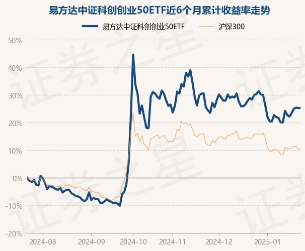 证券之星消息,1月23日,易方达中证科创创业50ETF最新单位净值为0.5538元,累计净值为0.5538元,较前一交易日上涨0.0%。历史数据显示该基金近1个月下跌3.13%,近3个月下跌3.9%,近6个月上涨24.31%,近1年上涨25.29%。该基金近6个月的累计收益率走势如下图: