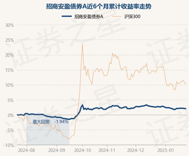 证券之星消息,1月23日,招商安盈债券A最新单位净值为1.0979元,累计净值为1.8614元,较前一交易日下跌0.04%。历史数据显示该基金近1个月下跌0.53%,近3个月下跌0.21%,近6个月上涨2.05%,近1年上涨7.87%。该基金近6个月的累计收益率走势如下图: