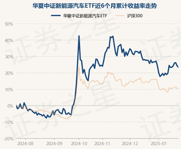 证券之星消息,1月23日,华夏中证新能源汽车ETF最新单位净值为1.1855元,累计净值为1.1855元,较前一交易日下跌0.7%。历史数据显示该基金近1个月下跌1.79%,近3个月下跌1.45%,近6个月上涨23.46%,近1年上涨10.45%。该基金近6个月的累计收益率走势如下图: