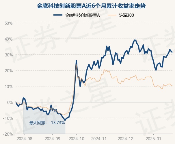 证券之星消息,1月23日,金鹰科技创新股票A最新单位净值为1.4499元,累计净值为1.7859元,较前一交易日下跌0.54%。历史数据显示该基金近1个月上涨0.62%,近3个月上涨8.02%,近6个月上涨31.32%,近1年上涨39.01%。该基金近6个月的累计收益率走势如下图: